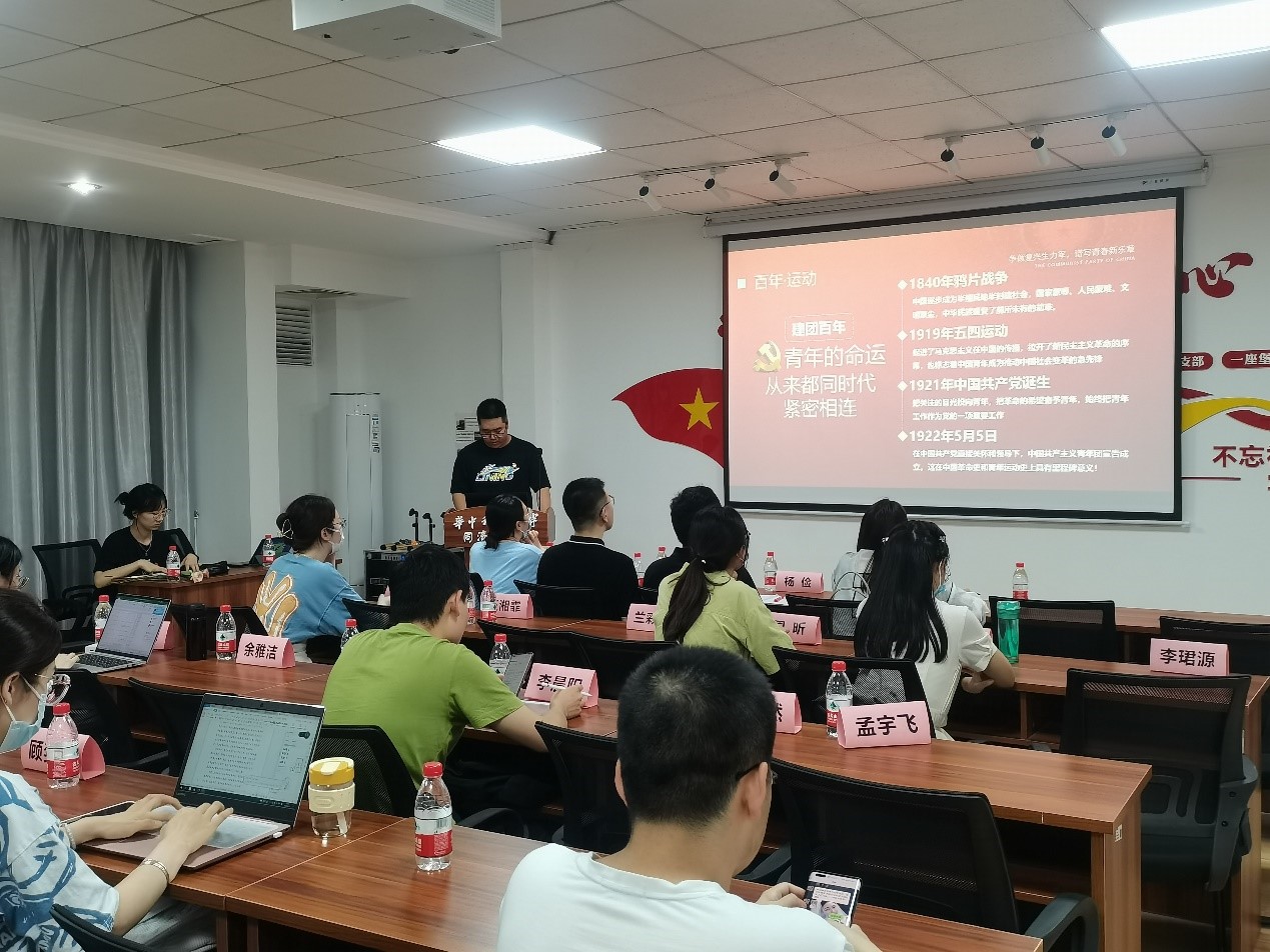 “理论学习”环节,丁瑛赫同志带领大家学习了习近平总书记在庆祝中国共产主义青年团成立100周年大会上的重要讲话精神,从“百年运动”“百年遵循”“今朝青春”“今朝有我”四个方面展开分享,呼吁党员同学们坚持学以致用,将重要讲话精神作为推动工作的根本遵循,切实把重要讲话精神贯彻到工作各个领域。